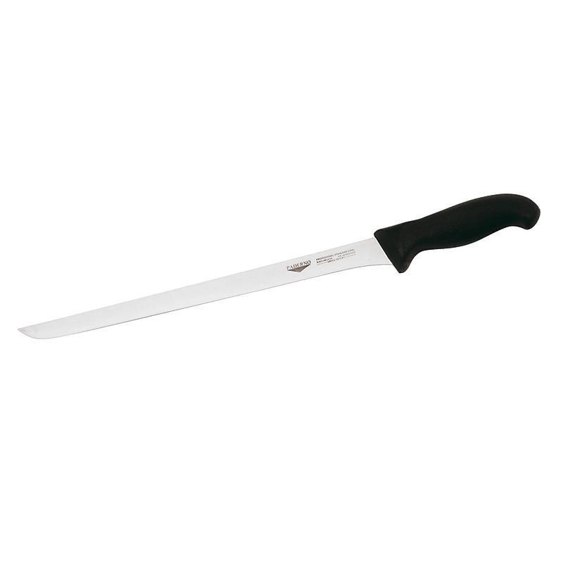 Ножи для тонкой нарезки объединяют три ключевых свойства: большая длина (от 25 до 36 см), гибкость лезвия и минимальная толщина обуха. Именно эта комбинация даёт срез в один-два миллиметра — или даже тоньше. Для решения этих задач мы выбрали три специализированных ножа из профессиональной линейки бренда Paderno, которые превращают нарезку в настоящее искусство.